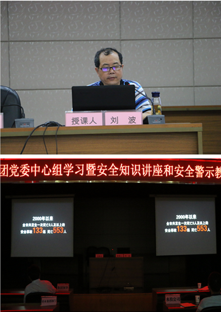 ? ? 6月21日下午,碧水集團組織開展黨委中心組(擴大)“不忘初心、牢記使命”專題輔導學習暨安全知識講座和安全警示教育活動。
