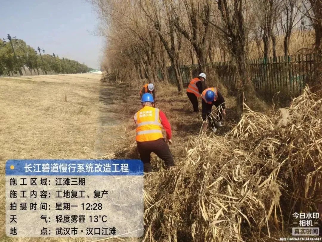 ? ? ? ?1月28號,碼頭旁機械正在進行平整施工,截至今日項目按計劃推進,正在開展綠化地形修整、植草邊溝放線開挖、排水管道施工、廣場路床修整等施工作業。目前本項目已完成生態區的防洪林采伐1546余棵,地表清理約7萬平米,綠化地形修整約2萬平米,護岸臺階基礎3900平米,雨水管道200m,園路路床及基層2600平米。