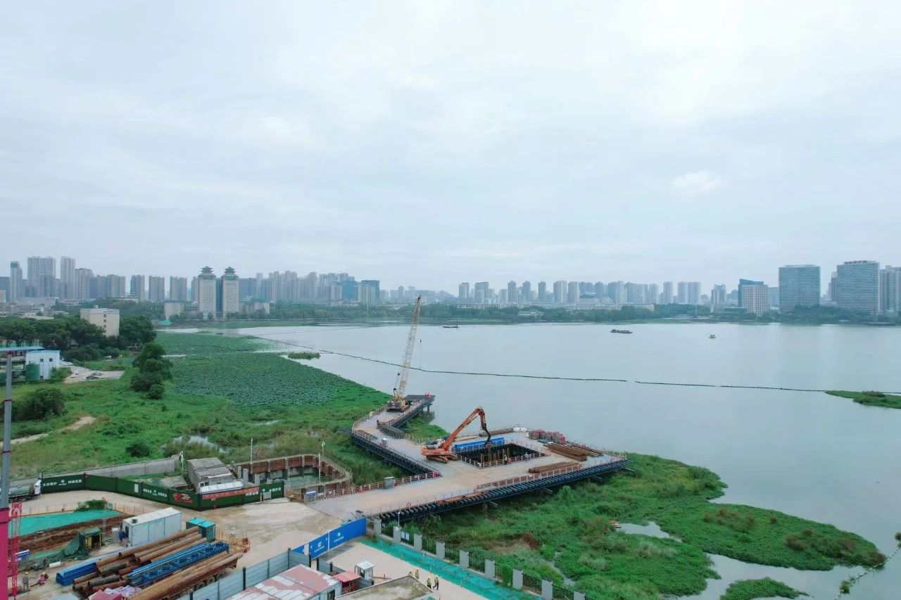 ? ? ? ?自2023年6月底開工以來,陸地明挖段、高壓旋噴樁、鋼板樁支護、排氣井、沉井、水上鋼棧橋平臺等全面開工。項目由橋梁公司、千湖海綿(奧鑫)公司負責施工,施工周期一年,總投資約2億元。