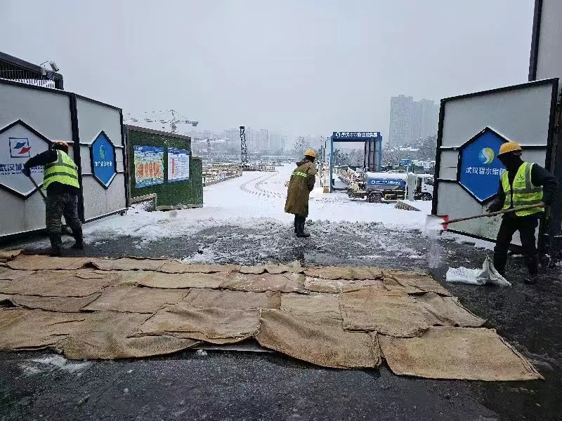 ? ? ? ?巡司河綜合治理二期項(xiàng)目投入除雪作業(yè)人員29人,鋪設(shè)麻袋150件,除雪鏟車一臺(tái),除雪鹽15袋,保障白沙洲大道及南湖部分路段行車安全;巡司河綜合治理一期項(xiàng)目突擊隊(duì)51人,頂風(fēng)冒雪,全力清除項(xiàng)目施工區(qū)域及武梁路面上的積雪;巡司河街污水管道及跨復(fù)興路箱涵工程總承包(EPC)項(xiàng)目齊心協(xié)力,分工明確,高效配合,對現(xiàn)場電纜線及水管已進(jìn)行防寒保護(hù),聯(lián)合社區(qū)對工地周邊道路除雪去冰;青山濕地二期項(xiàng)目部組織18人突擊隊(duì)、鏟車1臺(tái),拋撒工業(yè)鹽0.5噸,草墊麻袋10捆,為青山汽渡碼頭道路、輪渡碼頭行人通道及周邊住戶掃除積雪;南湖生態(tài)活水項(xiàng)目補(bǔ)水通道工程突擊隊(duì)20人,拋灑2噸融雪劑,對項(xiàng)目內(nèi)部道路及周邊近2公里道路進(jìn)行融雪除冰。