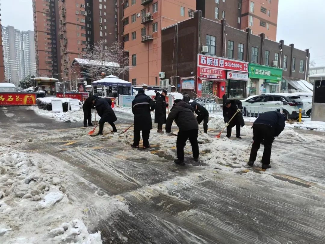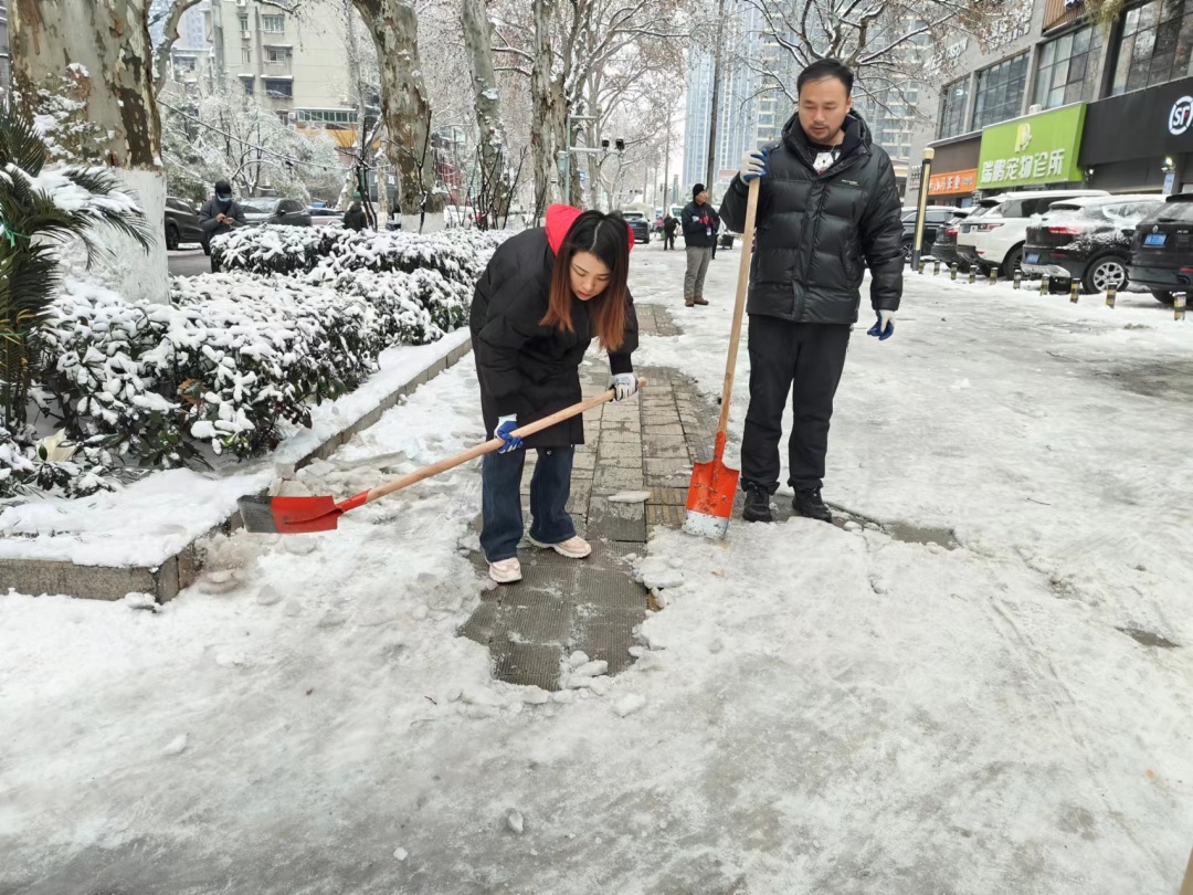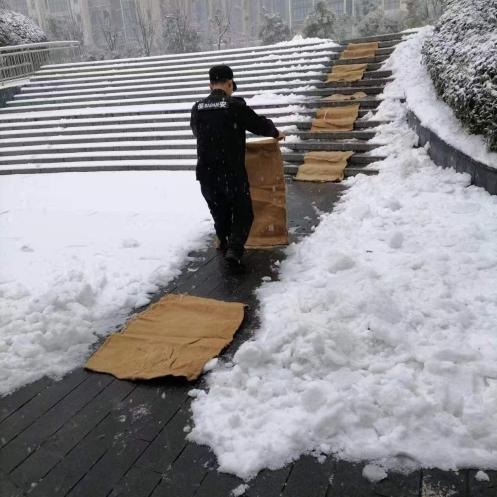 ? ? ? ?為應(yīng)對低溫雨雪冰凍天氣,武碧綜發(fā)公司全員行動(dòng)迅速成立掃雪隊(duì)伍,對公司各項(xiàng)目小區(qū)道路和周邊道路的積雪、覆冰進(jìn)行清掃,并及時(shí)拋灑融雪劑、鋪設(shè)麻袋、草墊等防滑物資,確保各出入口及通行區(qū)域無積雪結(jié)冰,全力保障居民的出行安全。