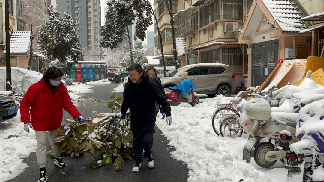 ? ? ? ?2月4日04時(shí)10分,武漢市氣象臺(tái)發(fā)布暴雪黃色預(yù)警信號。東湖綠道三期項(xiàng)目位于東湖南路,雙向兩車道,毗鄰東湖,道路臨水、彎多、路窄,一旦結(jié)冰行車時(shí)危險(xiǎn)性極高。清晨6點(diǎn)半不到,項(xiàng)目部突擊隊(duì)員們在武漢大學(xué)凌波門集合,投入到緊張的鏟雪除冰行動(dòng)。經(jīng)過近6個(gè)小時(shí)的與雪“共舞”,東湖南路凌波門附近積雪和厚冰被突擊隊(duì)一掃而凈。截至5日下午15時(shí),為放鷹臺(tái)段人行通道420米、東湖南路3公里掃雪除冰,清理倒伏法桐一棵、沿線因雪壓落樹枝全部清理完畢,道路無結(jié)冰且通行狀態(tài)良好。